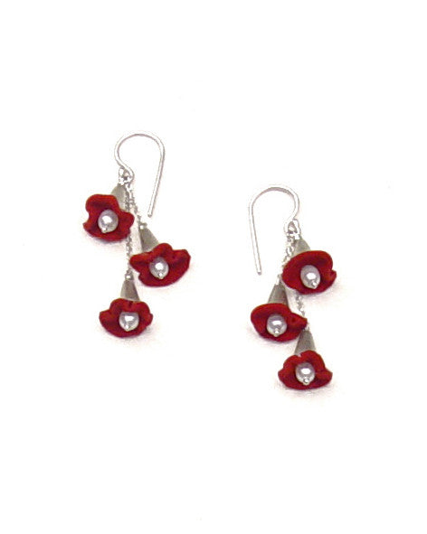 Earrings in sterling silver, patent leather and white freshwater pearls
